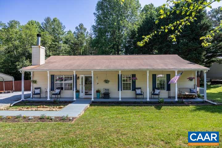 Elegant One-Level Living on 1.05 acres! Xfinity High-Speed Internet (Comcast). This 3BR home w/ 2 darling BATHS is minutes from the Albemarle County line making your morning commute to Charlottesville a breeze. Enjoy the Majestic CATHEDRAL CEILING living room with the blazing WOOD BURNING FIREPLACE for magical wintry nights. Splendid SUNLIT KITCHEN with easy access to the dining room and backyard. Luxury Vinyl Plank flooring throughout the living room, kitchen, and bedrooms. Outdoor space is SPECTACULAR complete with a CARPORT, MULTIPLE DECKS, STONE FIRE PIT, PERGOLA w/ AWNING, 2 SHEDS, GARDEN AREA, and CHICKEN COOP! Quiet evenings on the COVERED FRONT PORCH is an absolute must! The WHOLE HOUSE GENERATOR guarantees you’ll never be in the dark without power. Convenient proximity to shopping, gas, wonderful restaurants, and the GLORIOUS BLUE RIDGE MOUNTAINS!